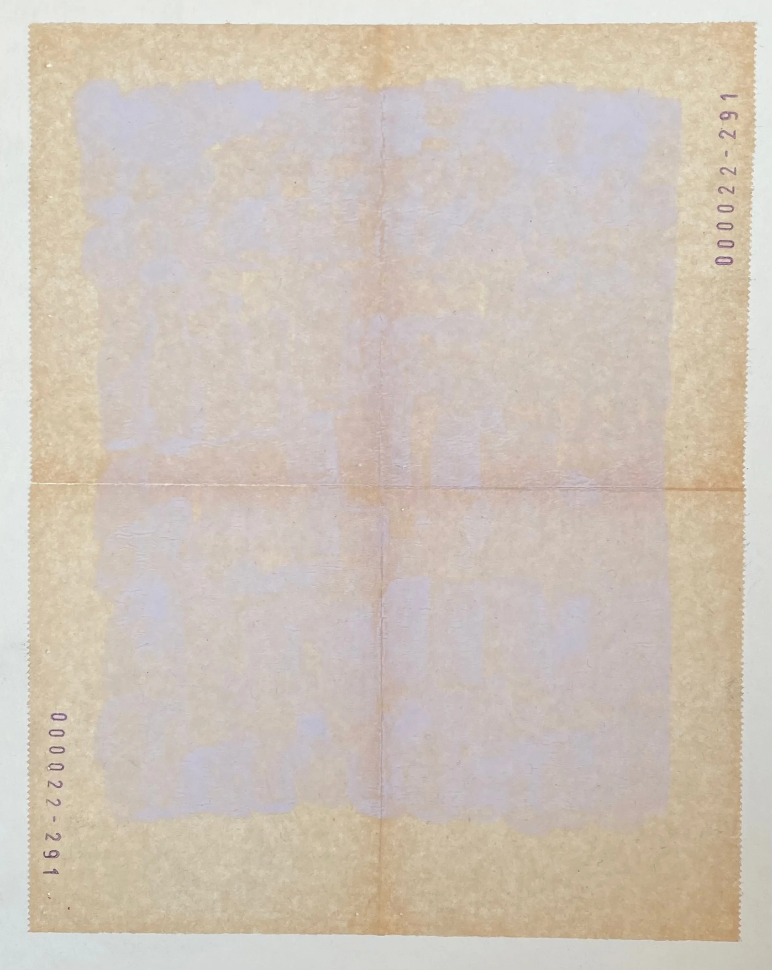 ‘00022-325’ gouache on vintage toilet paper 30 x 20 cm
